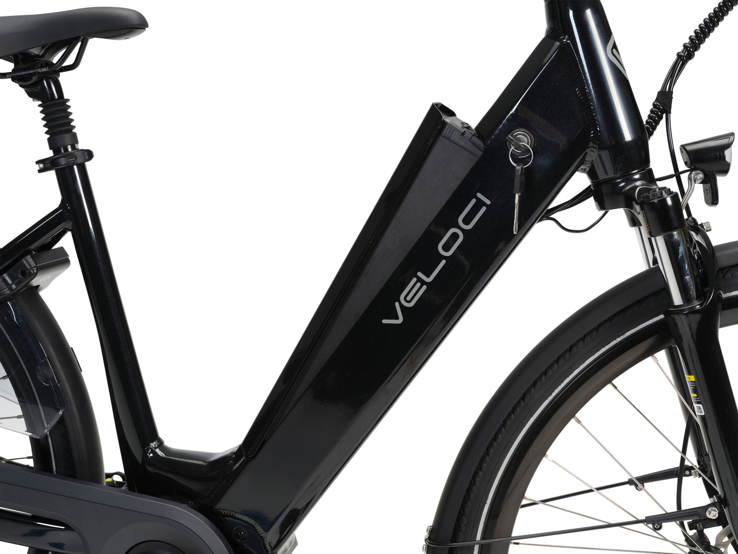 Das Veloci Solid Elektrofahrrad ist in schwarz erhältlich